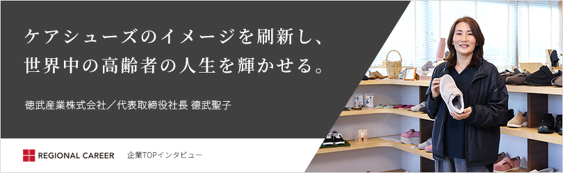 当社が運営する転職支援サイト「リージョナルキャリア」にて、徳武産業(株)代表取締役社長 德武聖子氏の取材記事を掲載しております。併せてご覧ください。